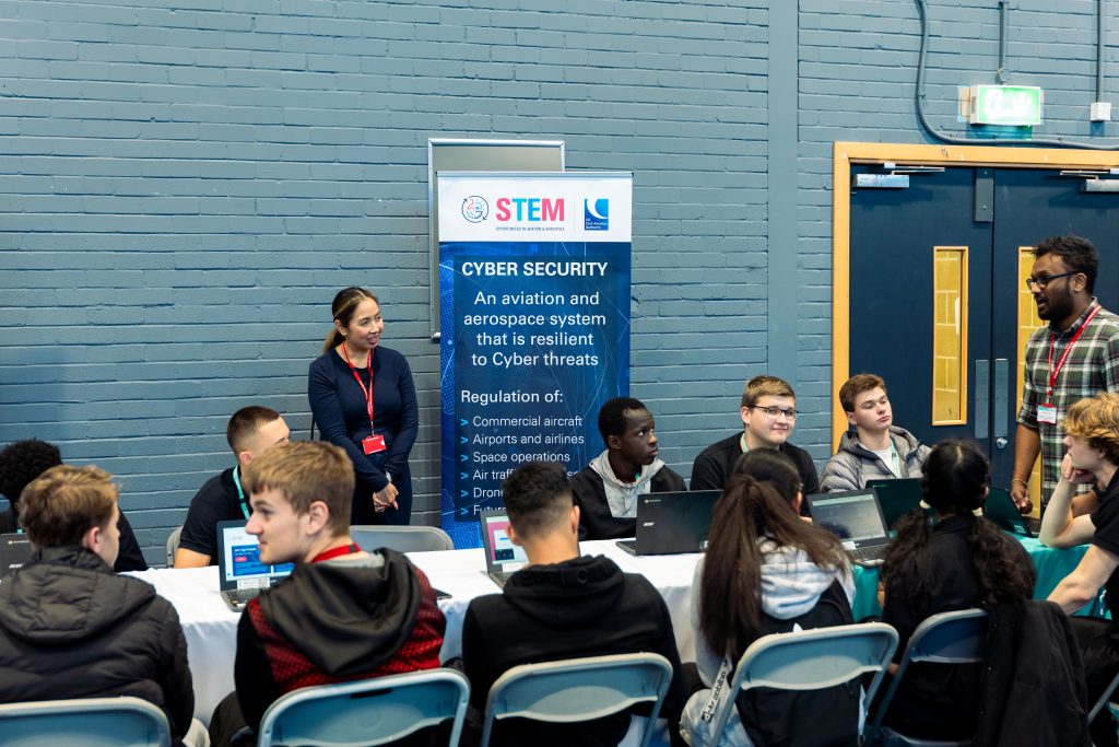 Members of the CAA Cyber Security Oversight team, with the support of CAA STEM ambassadors, were asked to be part of a series of charity events being hosted in four colleges around the UK. The theme of these events was to showcase career opportunities for young people in cyber, security, and safety, with companies such as Curries, BAE Systems and IBM also in attendance.